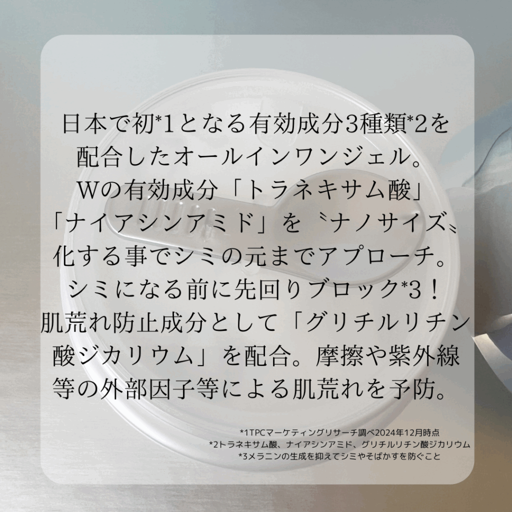 有効成分を含んだ乳化液をナノサイズ化する事でシミの元にまでアプローチしてくれるのは勿論、シミになる前に先回りしてブロック*1してくれるらしいのです。